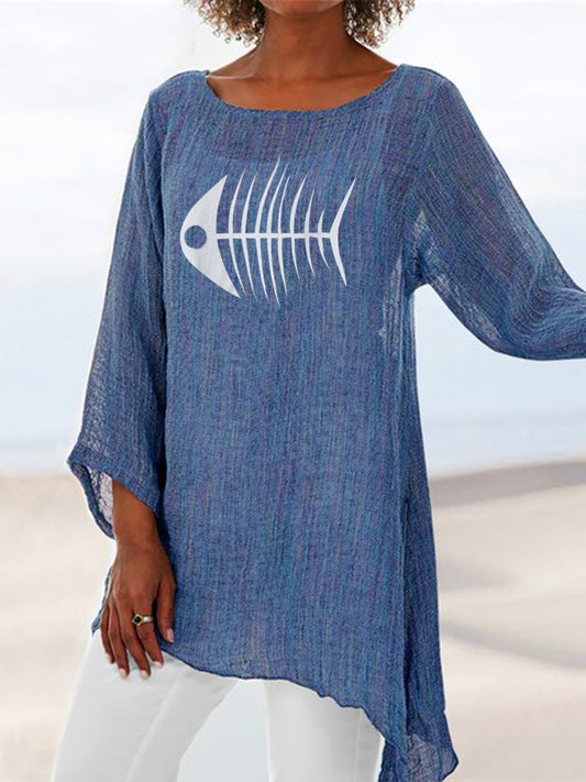 3/4 Sleeve Printed Casual Cotton-Blend Shirts & Tops