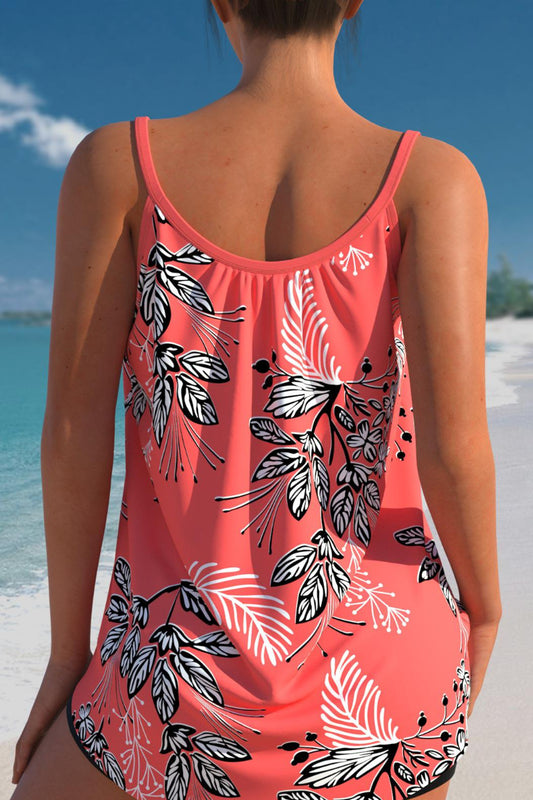 Curved Hem Wide Strap Floral Print Tankini Set