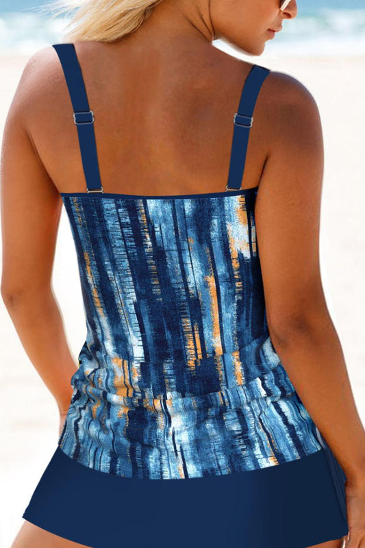 Double Straps Geometric Print Tankini Set